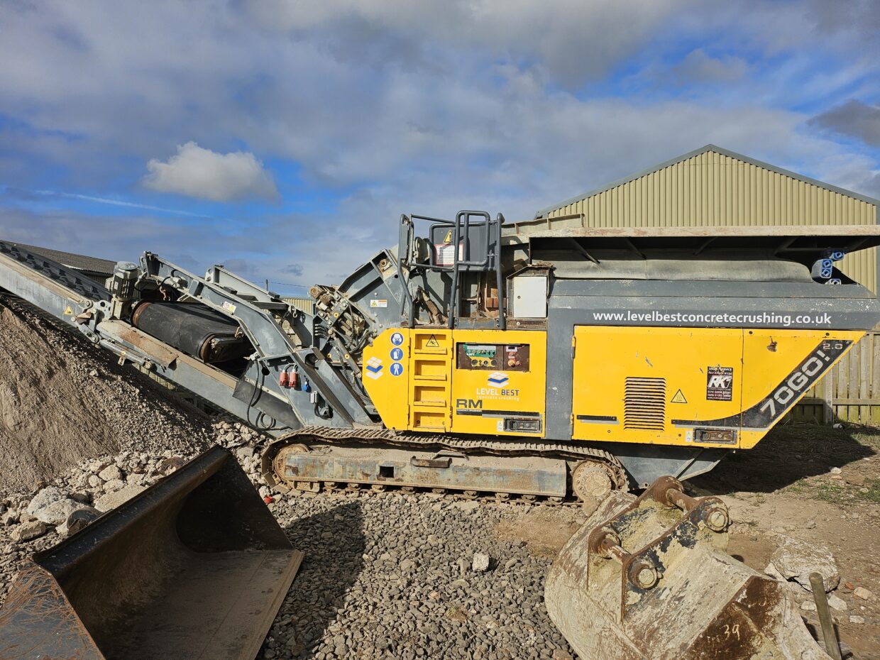 Mobile concrete crushing machine at Level Best Concrete Flooring